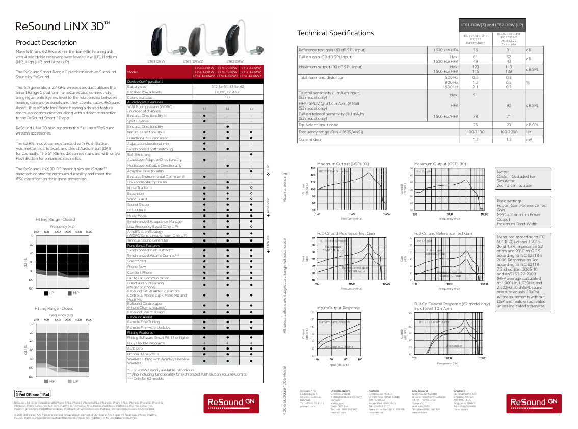 ReSound LiNX 3D -datalehti RIE - 61, 62