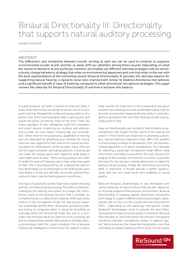 ReSound LiNX 3D -tutkimusraportti - suuntaisuusstrategia