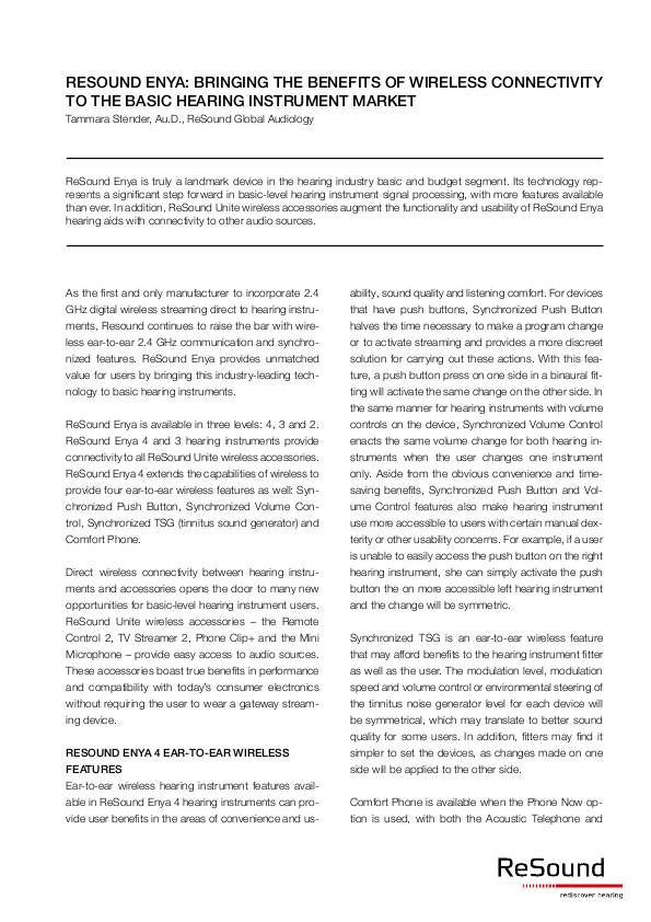 Whitepaper - ReSound Enya: Bringing the benefits of wireless connectivity to the basic hearing instrument market